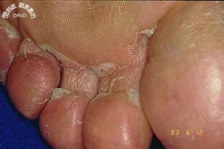 40歲男性主訴腳底香港腳治療後剩趾縫不癢的脫皮經年,想知道為什麼。..