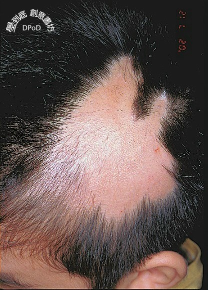 7歲男童被發現頭上一塊禿髮現象有一個多月之久..