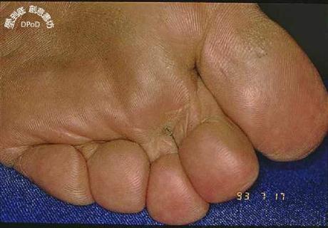 40歲男性主訴腳底香港腳治療後剩趾縫不癢的脫皮經年,想知道為什麼。